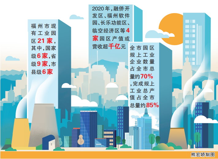 “本以为新厂房装修和相关手续办理要花一段时间,没想到直接‘拎包入驻’,让我们有了更多精力专注于生产。”眼下,在闽台(福州)蓝色经济产业园内的“蓝谷”产业综合体,首批入驻企业之一——精诚机械正开足马力生产,总经理王书霖为园区的高效服务和完善的配套设施点赞。 园区是产业发展的重要载体,是高质量发展的主阵地。当前,福州市立足新发展阶段、贯彻新发展理念、积极服务和融入新发展格局,坚持“3820”战略工程思想精髓,全面推进工业(产业)园区标准化建设,为建设现代化国际城市提供重要支撑。 筑巢 完善园区要素保障 放眼闽台(福州)蓝色经济产业园,园区内道路、员工住宅、学校等产业配套项目正在加紧施工,昔日农场滩涂摇身变为加速崛起的产业园区,为园区引进新的大项目、好项目增加吸引力。 “为确保产业项目引得进、留得住、发展好,我们不断加快园区生产生活功能配套设施建设,保障落地项目发展所需。”闽台(福州)蓝色经济产业园相关负责人介绍,园区始终大力推进路网建设,目前园区“三横三纵”核心主干路网正逐步建成。同时,大力推进主干道路沿线供电、供水、供气管网建设。 火热的发展势头也出现在金山工业园区。短短一年多时间,总建筑面积逾15万平方米的5栋楼在乌龙江畔拔地而起,全新的沿江4.0版产业与城市景观带蓝图正徐徐展开。 据悉,金山工业园橘园洲片区是福州市工业园区规范提升的示范点。为全力破解老工业园发展难题,向空间要效益,重塑片区生态,橘园洲片区通过政府收储提升和鼓励优质企业自主提升相结合的方式,在乌龙江畔打造以智能产业等高新技术产业为主的创新型产业园区。 “首批A、C、D、E四个地块于2019年下半年进行政府收储提升,今年上半年启动B、F地块收储,6个地块面积共计246.69亩。”金山工业园区管委会相关负责人介绍,A地块项目已于5月完成单体验收,其他地块的开发也在提速。同时,通过政府收储提升的示范带动,企业积极参与提升改造。截至目前,已有38家企业主动申请自主提升。 福州市不断健全园区公共配套体系,推广园区“七通一平”标准化建设,完善吃住行、教育医疗、文体娱乐“3+2+1”生活配套,加快建设引进研发、金融、保险等公共服务平台。同时,组织开展工业(产业)园区标准化建设集约用地专项行动和高标准厂房建设工作。2020年全市清理盘活土地近2.5万亩,建成高标准厂房65万平方米。 建链 推动特色产业集聚 走进福清江阴港城经济区,落地不久的思嘉新材料科技产业园项目正加速推进。项目拟投资50亿元,正朝着全球最大规模空间气密新材料智能制造基地迈进。 从首次接洽到完成签约,只花了不到3个月,思嘉集团有关负责人道出了背后的奥秘, “在化工‘老大哥’万华化学的盛情邀请和介绍下,我们对江阴港城经济区的基础条件和配套服务胸有成竹,也对未来发展充满信心。” 据介绍,该项目一期建成后,将大量利用万华化学(福建)产业园的PVC、MDI、TPU等化工新材料和友谊新材料科技工业园的包装材料,打造化工新材料下游终端应用产业链。项目二期还将引进PET聚酯工业纤维织造、TPU及PVC材料绿色供应链可循环再生、TPU流延生产等上游企业,以及气密产品、迪卡侬户外休闲充气产品等下游项目,做大空间气密新材料生态链。 引进一个,带来一串!放眼榕城,各工业(产业)园区标准化建设如火如荼,产业“串珠成链”比比皆是,催生一个个“航母”级产业集群—— 福州软件园,汇聚超800家企业,云集软件信息、光电芯片、新一代信息技术等三大数字经济支柱产业,致力打造“中国数谷”; 福清融侨开发区,捷联电子、捷星显示、京东方光电等发挥龙头引领作用,集聚上百家上下游企业,力争“十四五”期间园区电子信息产业产值达到千亿元; 闽侯青口汽车工业园区,依托福建奔驰、东南汽车等龙头企业,推动产业基础高级化、产业链现代化,加快建设中国东南汽车城; …… 市工信局有关负责人介绍,福州市立足产业基础、资源禀赋和环境承载能力,按照一个园区2~3个主导产业原则,明确园区主攻方向,推动特色优势产业集聚,形成全市差异化、规模化、集群化的“两轴两湾区”产业空间格。去年,全市园区完成规上工业总产值占全市总量的约85%,培育形成纺织化纤、轻工食品、机械制造、电子信息、冶金建材等5个产值超千亿元的产业。 强核 增强科技创新能力 福兴经济开发区建设再传好消息!打造年产值超百亿元的“园中园”项目——福州数字内容产业园将于本月底前完成一期改造提升,成为福州科创走廊上的一颗明珠,助力园区产业升级。 很难想象,福州数字内容产业园原先是一家台资企业的旧工业园区,因产业转移后原本的厂房闲置2年之久,外观日渐破损。如今,一场蝶变正在上演,改造提升后的园区在功能布局上融合众创空间、孵化器、加速器和产业化基地,打造创新创业创造载体,形成全链条、接力式、高度闭合的数字产业培育生态圈。截至8月底,园区已签约企业30家,同时意向入驻企业32家,正在积极对接洽谈中。 步步高,日日新。在福州高新区,依托大学城12所高校、20万人才的创新生态圈,打造众创品牌,推动与清华、北大等高校战略合作成果项目落地,中科院海西研究院、福建光电创新实验室相继建立,创新创业创造热潮同样奔涌。 抓龙头,建集群,强园