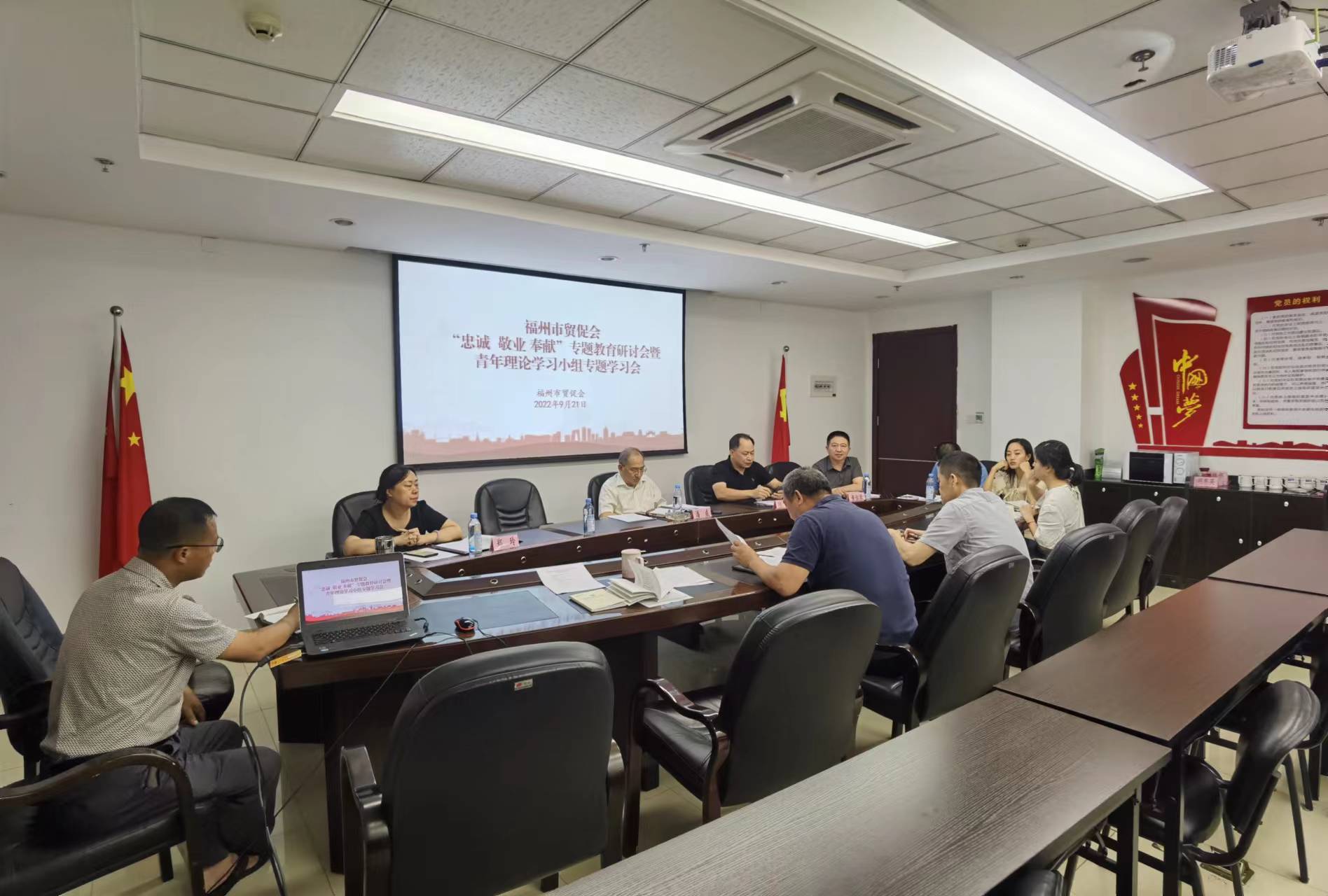 为带头走好践行“两个维护”第一方阵,深入推进模范机关创建,以实际行动迎接党的二十大胜利召开,福州市贸促会于9月21日下午组织开展“忠诚·敬业·奉献”对党忠诚教育暨廉政文化教育交流研讨活动,党组理论中心组成员、青年理论学习小组成员及全体党员干部参加,党组书记、会长潘威主持讲话。 会议组织学习了《习近平谈治国理政》第四卷中关于廉政及青年干部的相关重要论述,随后由党支部纪检委员戴征宇主讲党风廉政建设主题微党课,最后全体与会人员围绕习近平总书记在和平时期提出的检验对党忠诚的“四个能不能”标准开展了交流研讨。 “四个能不能”检验标准即“能不能坚持党的领导,坚决维护党中央权威和集中统一领导,自觉在思想上政治上行动上同党中央保持高度一致;能不能坚决贯彻执行党的理论和路线方针政策,不折不扣把党中央决策部署落到实处;能不能严守党的政治纪律和政治规矩,做政治上的明白人、老实人;能不能坚持党和人民事业高于一切,自觉执行组织决定,服从组织安排”。这不仅是对年轻干部的时代之问,更是对全体党员干部的未来之问,忠诚是为政之魂,对党忠诚,是共产党人首要的政治品质。会议强调,党员干部无论在何时何地何处都要坚守信念,坚持底线,做对党忠诚的践行者,以实际行动在全面建设社会主义现代化国家新征程中奋勇争先、建功立业,为党的二十大顺利召开献礼。 |
