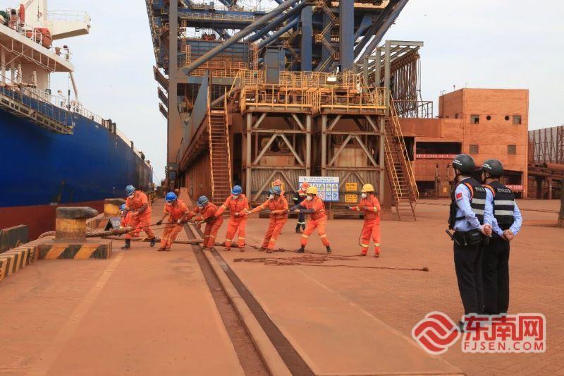 40万吨级散货船“远津海”轮停靠在东吴港区罗屿作业区9号泊位 “此次靠泊的新加坡籍‘远津海’轮,本航次约载22.5万吨铁矿进港,计划在这里完成全部卸货。”莆田出入境边防检查站执勤一队四级警长肖海峰说道,为保障大型船舶快速通关,边检部门按照“一船一策”原则,科学制定勤务方案,提前摸排核查船舶信息和航行轨迹,第一时间为“远津海”轮办理边检手续,提前审核登轮作业人员和搭靠船舶信息,节约船舶滞港时间,确保船舶作业“零等待”,出境入境“零延时”。
