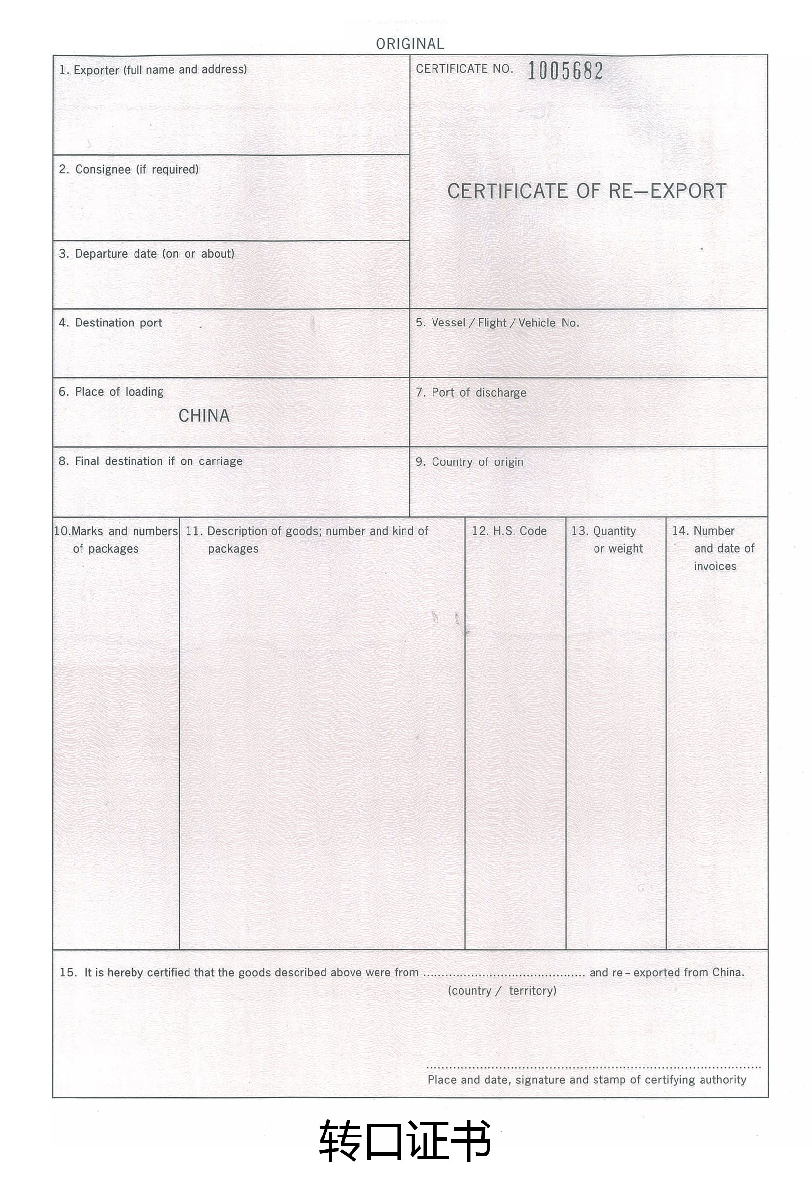 转口证书