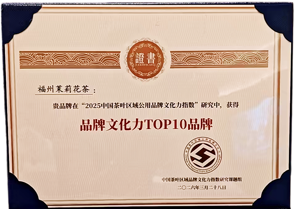 近日,以“中国茶 世界风”为主题的第三届中国茶品牌文化年会在安徽祁门举行。会上发布了《2025中国茶叶区域公用品牌文化力指数研究报告》,福州茉莉花茶凭借深厚的文化底蕴与品牌建设成果,进入该指数前10名,同时获评“品牌文化力·优秀成长品牌”。