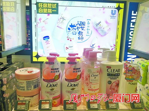 商场货架上展出的樱花系列产品。 厦门日报讯(文/图 记者 蒙 婧)樱花薯片、樱花糕点、樱花文具、樱花护肤品……近日,有市民注意到,除了在户外盛放,鹭岛的樱花也“开”进了室内商场,成为这个春天备受欢迎的商品IP。 记者走访厦门多家商店、超市发现,很多货架上都新增了不同品牌的樱花主题产品,它们种类繁多、样式美观,在包装、口味、造型和促销方式等方面都让人眼前一亮。 樱花成不少商场热门元素 日前,记者来到湖里万达广场、SM城市广场看到,除了在商场内外装点樱花类的装饰物,商场内粉色系的樱花产品层出不穷,一些货架上还开设了“樱花”专柜。 星巴克的樱花初绽玛奇朵、樱花草莓口味的奥利奥、乐事樱花米酿味的薯片、锐澳的樱花龙舌兰……记者注意到,近期不少品牌新推出的产品都与樱花相关:有的在造型上设计成樱花形状,有的则以新款“樱花口味”宣传。 不过,这些所谓樱花口味的食品可能并没有樱花。此类产品大多数在配料表中未标明樱花成分,有的直接标注:樱花口味来自食用香精香料或樱桃浓缩汁。 走访中记者观察到,除了食品,樱花也融入化妆品、水杯、文具盲盒、衣物等当中,在造型上融合樱花元素,或以樱花图案进行包装。 “樱花经济”受年轻女性青睐 樱花产品多呈现粉嫩柔和的颜色,不少商家在宣传中将樱花产品和“少女心”“浪漫”“高颜值”等词联系。樱花产品受到不少市民的欢迎,新颖独特的包装或造型尤其吸引小孩和年轻女性。 记者在一家超市看到,10分钟内有3位顾客购买了樱花产品,均为女性。超市工作人员介绍,樱花相关的产品很受市民欢迎,特别是年轻的女性。超市店员告诉记者,不少樱花产品是季节专属产品,过季会下架,因此近期还有人专程来买樱花口味的产品。 “还没见过樱花口味的饼干,价格不贵,买来和闺蜜尝尝看。”挑选了几盒樱花草莓味百醇饼干的市民杨女士说。“粉色的樱花蛋糕和春天很搭,发朋友圈也很好看。”正在品尝樱花甜品的蔡女士告诉记者,她还买了樱花薯片,打算和亲友外出赏樱的时候吃。 |